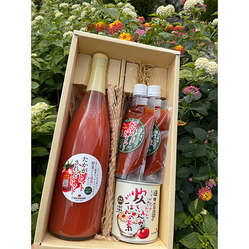 KY田中農園元値 ¥3,840 - 元値 ¥3,840元値¥3,840(税込)¥3,840 - ¥3,840現在の価格 ¥3,840(税込)お店などで売っているトマトは「たかがトマト」かもしれない。しかし、そこまでいくには、天候に左右され、病気や害虫から守り、成長に伴い肥料や水やりに頭を使い、汗をながして作った「されどトマト」です。土づくりを大切にし、甘さと酸味のバランスのとれたゴールデン比率トマトだけを使用し、ジュース・ピューレ...